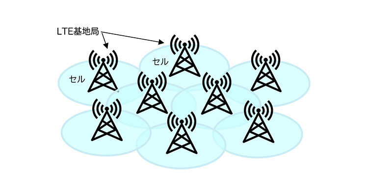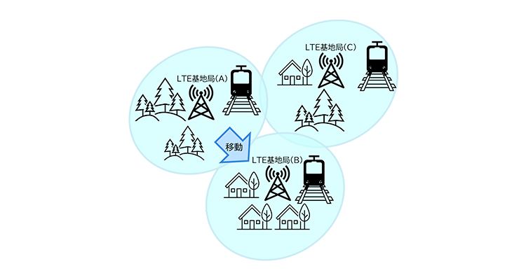 移動しながら通信をする場合には、スマートフォンなどの携帯電話端末やLTE対応ルーター、LTE対応IoT機器などの端末が交信しているセルの基地局から、移動した先のセルの基地局に交信先を切り替える必要があり、この交信先の基地局の切り替えのことをハンドオーバーと呼んでいます。移動中に電波が弱くなると周辺のセルを測定し、より強い信号のセルの基地局に切り替えることでハンドオーバーが行われ、結果として私たちは移動中でも途切れずにLTE通信をすることができます。